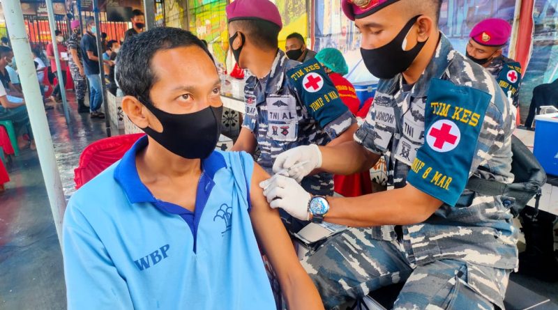 Yonif 8 Marinir Bersama Polres Langkat Melakukan Kegiatan Vaksinasi di Lapas Narkotika Tanjung Pura