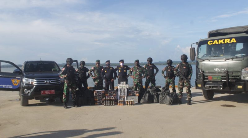 Ribuan Miras Hasil Tangkapan Satgas Pamtas Yonarhanud 16/SBC diserahkan Ke KPP Bea Cukai Nunukan