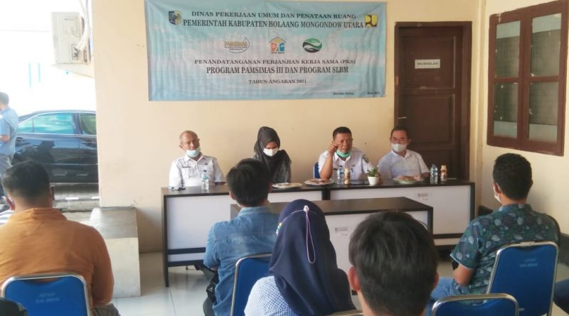 Dinas PUPR Bolmut Gelar Penandatanganan PKS Program Pamsimas III dan Program SLBM T.A. 2021