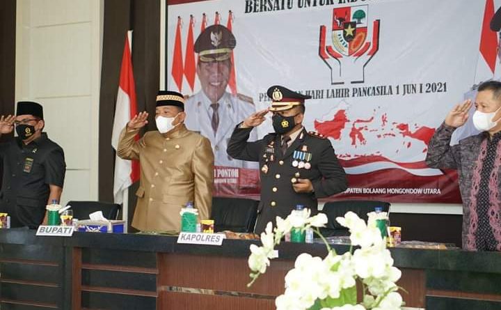 TERASNKRI.COM | BOLMUT, SULUT – Bupati Bolaang Mongondow Utara Drs. Hi. Depri Pontoh Mengikuti Upacara Peringatan Hari Lahir Pancasila Secara