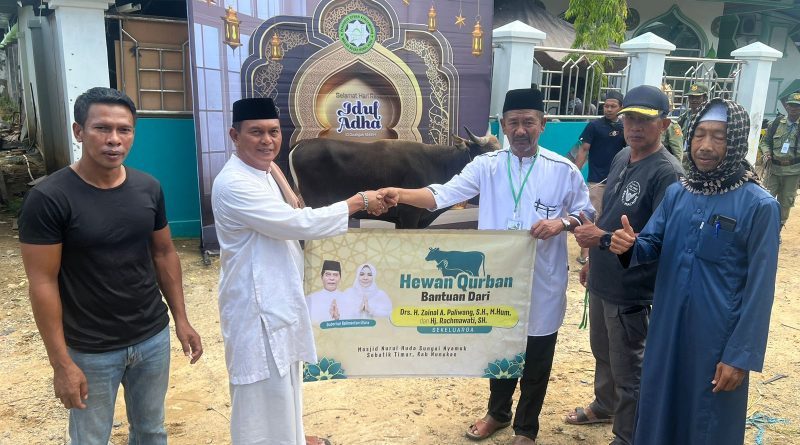 Zainal A Paliwang Bersama Keluarga Serahkan Sapi Qurban di Masjid Besar Nurul Huda