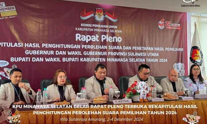 TERASNKRI.COM | MINSEL, SULUT – KPU Kabupaten Minahasa Selatan menyelenggarakan Rapat Pleno Terbuka Rekapitulasi Hasil Penghitungan Perolehan Suara Pemilihan serentak