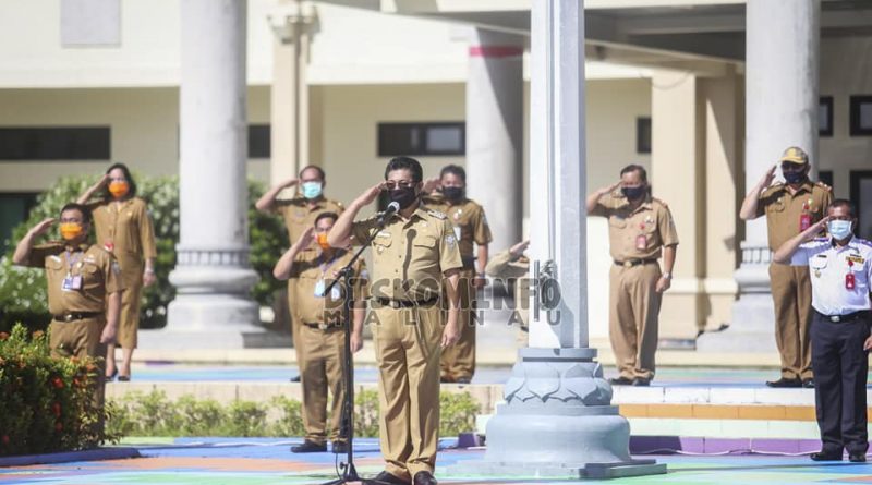 TERASNKRI.COM | Malinau- Apel pagi perdana Pemerintah Kab. Malinau dlm penyesuaian sistem kerja ASN dan Non ASN berlangsung di halaman