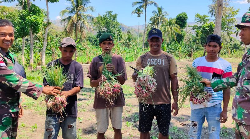 TERASNKRI.COM | Belu, NTT – Personel Pos Maubusa Kipur II Satgas Pengamanan Perbatasan RI-RDTL Sektor Timur panen bawang bersama warga