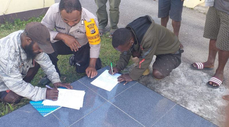 TERASNKRI.COM | Papua, Jayapura – Satuan Binmas Polres Jayawijaya melakukan mediasi penyelesaian kasus penyelesaian secara adat kasus pembunuhan antara suami