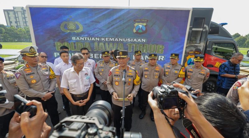 TERASNKRI.COM | SURABAYA, JATIM – Kapolda Jawa Timur memberangkatkan 50.789 paket bantuan kemanusiaan Polda Jatim peduli Bencana banjir di wilayah