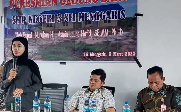 TERASNKRI.COM | NUNUKAN, KALTARA – Bupati Nunukan Hj. Asmin Laura Hafid, SE, MM, Ph. D menghadiri peresmian gedung Sekolah Menengah