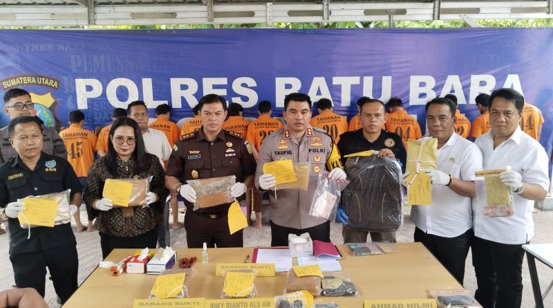 TERASNKRI.COM | BATU BARA, SUMUT – Polres Batu Bara menggelar pres release pemusnahan barang bukti atas pengungkapan kasus narkoba golongan