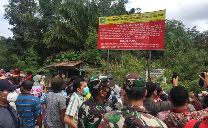 TERASNKRI.COM | RIAU – Ratusan personel gabungan Polres Bengkalis, TNI dan Satpol PP mengamankan jalannya pemasangan papan plang segel PKS
