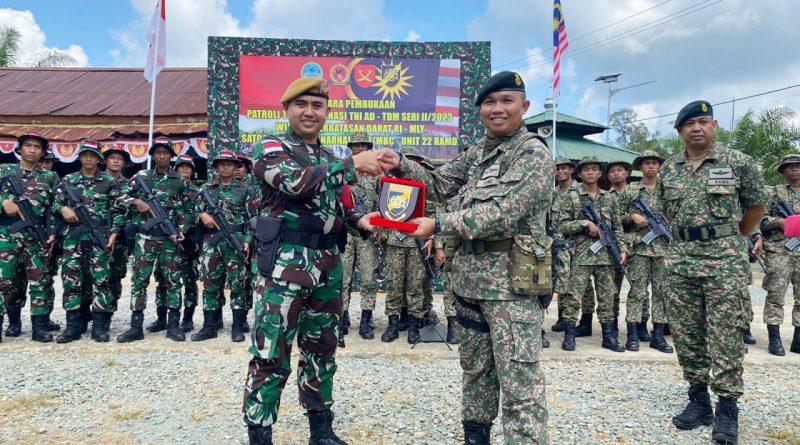 TERASNKRI.COM | NUNUKAN, KALTARA – Satgas Pamtas RI-Malaysia Batalyon Arhanud 8/MBC bersama Pasukan Batalyon 22 RAMD Malaysia melaksanakan Patroli Terkoordinasi