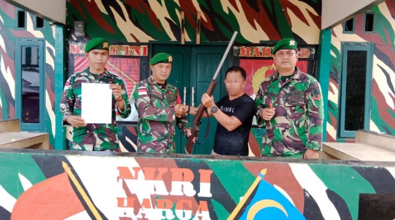 Masyarakat Serahkan Senjata Dengan Suka Rela Kepada Satgas Pamtas RI-Malaysia Yonif 621/Manuntung