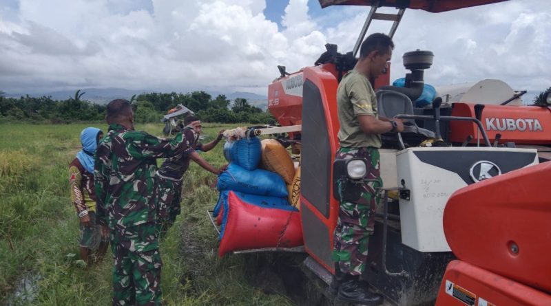 Disela Waktu Istirahat, Anggota Satgas TMMD Komsos Dengan Warga Pemilik Gilingan Padi