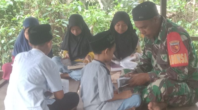 TERASNKRI.COM | NAMLEA, MALUKU – Satgas TMMD Ke -120 Kodim 1506/Namlea membantu mengajar mengaji anak-anak di Masjid Baitul Mutaqin Desa