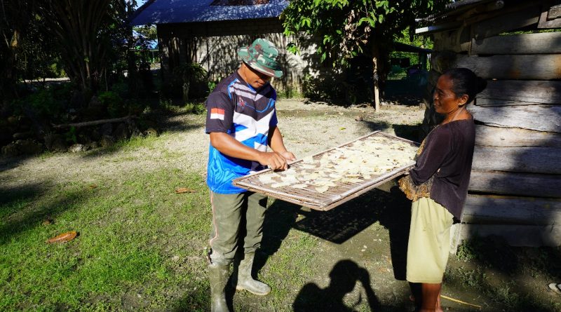 Komsos: Tanpa Sungkan, Anggota Satgas TMMD 1506/Namlea Bantu Warga Jemur Keripik Singkong