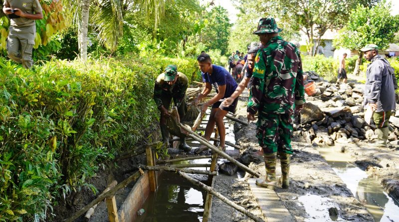 Demi Produktivitas Pekerjaan, Satgas TMMD Lanjut Kerja Drainase Meski Lokasi Pekerjaan Tergenang Air